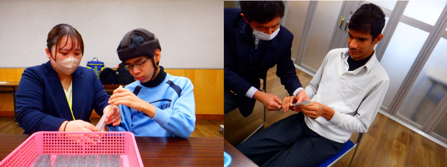 2月13日(金)に、進路学習の一環で社会福祉法人 あだちの里 綾瀬ひまわり園に行きました。綾瀬ひまわり園の概要や施設の生活について話を聞いた後、施設内の見学や作業の体験をしました。今回は、割りばしを紙の袋に入れる作業を体験しました。2名とも黙々と作業に取り組んでいました。学校から綾瀬ひまわり園までの往復は公共交通機関を利用したことも、良い経験となりました。進路見学を通して、将来の自分を想像するきっかけとなりました。